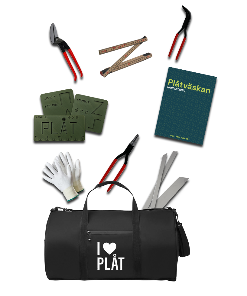 Plåtväskan är ett utbildningsmaterial som är utformat för att på ett praktiskt och inspirerande sätt ge möjlighet att prova på plåtslagaryrket. Aktiviteten kombinerar kreativitet, noggrannhet och hantverksskicklighet.